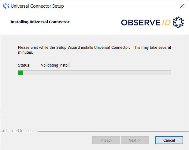 ObserveID Universal Connector.exe, to run the installation wizard.