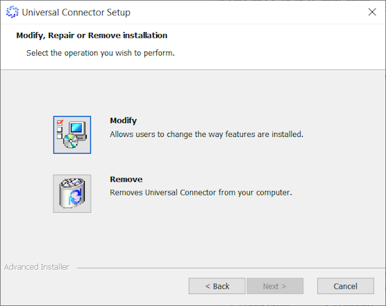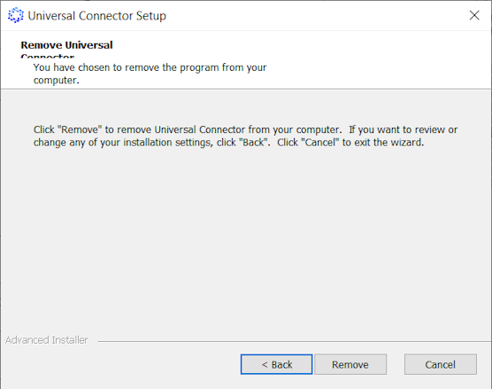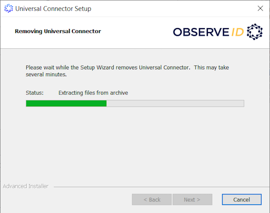 The ObserveID Universal Connector is running as a service on a Windows machine, and can be managed from the Services app window. If needed, the Universal Connector can be uninstalled with the same .exe-file, that was used for the service installation, as follows: